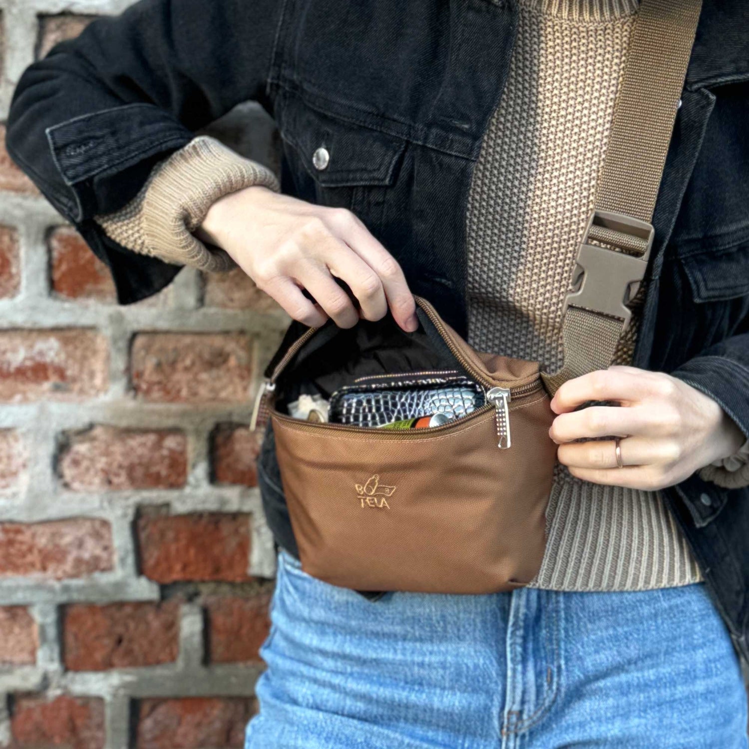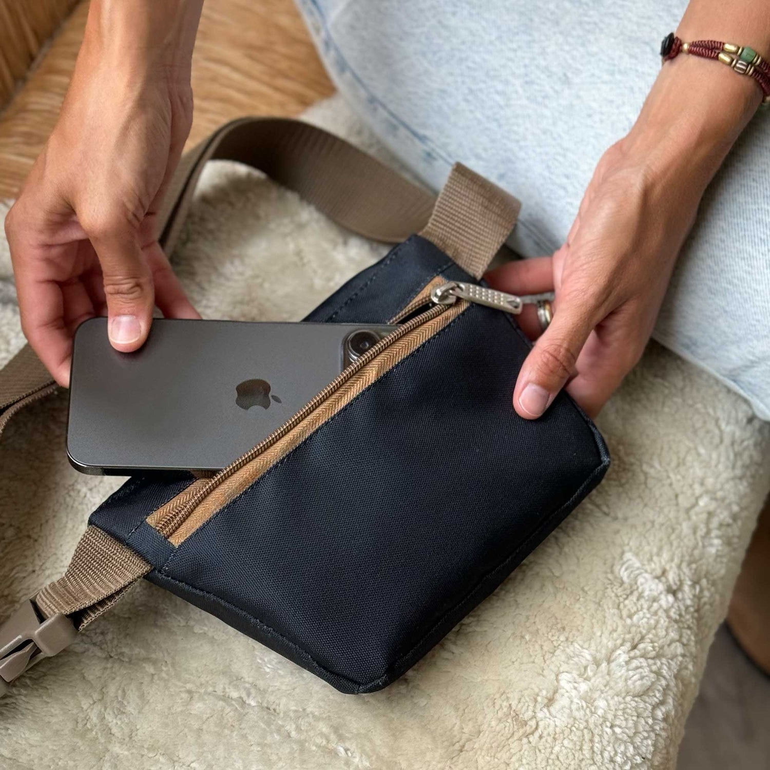Lo puedes llevar en el hombro, cruzado o en la cintura casi ni lo vas a sentir de lo cómodo y liviano que es. Camina donde quieras con total libertad.