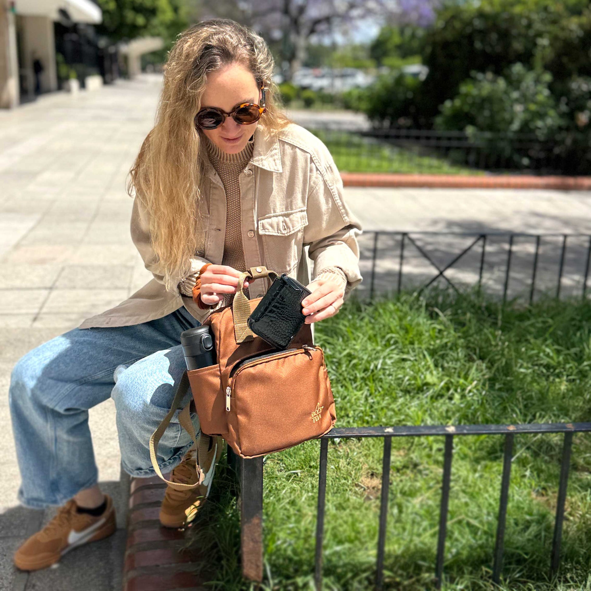 Hecha a partir de 8 botellas plásticas recicladas, la mochila cartera es perfecta para tu día a día.